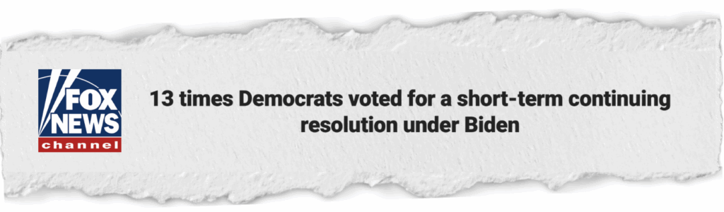 Just six months ago, Democrats voted for a clean CR to avoid a shutdown. In fact, over the last four years, under unified Democrat control, 13 clean funding extensions passed Congress without controversy.