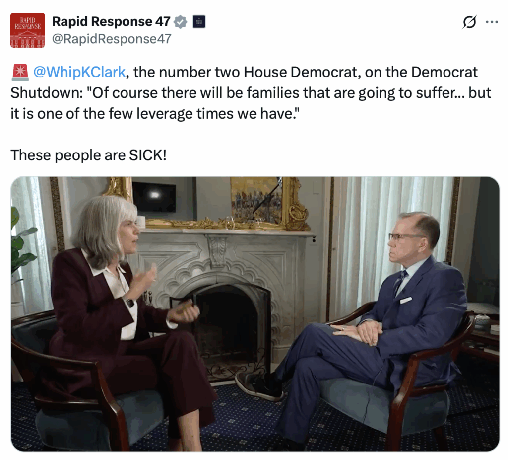 House Democrat Whip Katherine Clark, the #2 Democrat in Congress, openly admitted that Democrats are intentionally inflicting pain on working families to gain political leverage.