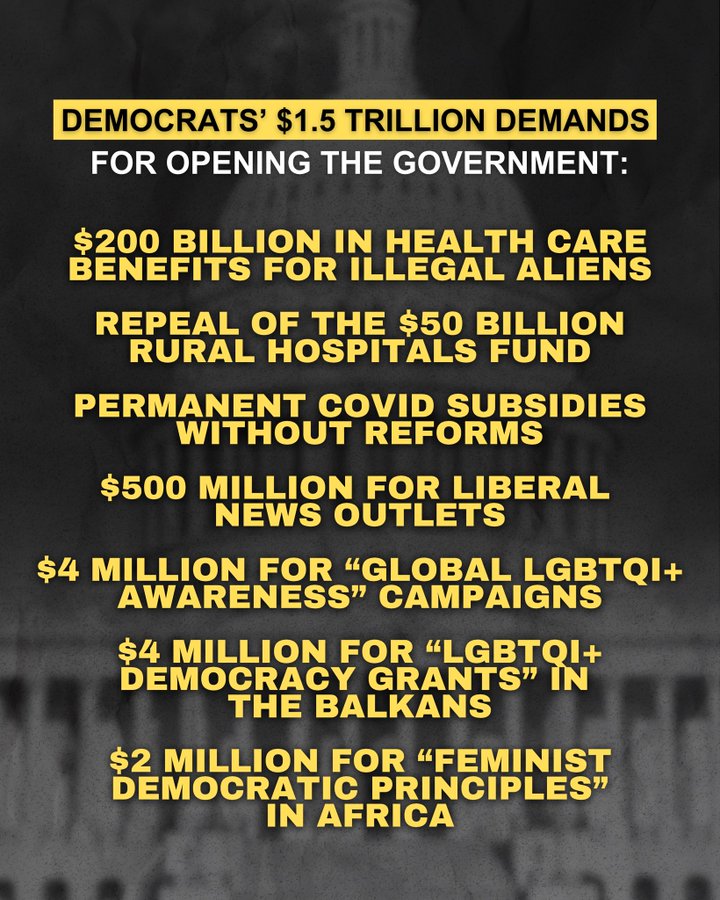 Senate Democrats are holding America hostage to fund a liberal wish list that has nothing to do with keeping the government running.